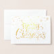 Cartão Metalizado Flocos de Neve Natalinos Grafia Chic Dourado