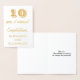 Este design de cartão de aniversário de casamento em folha de ouro apresenta uma mensagem como "10 anos de casamento! Parabéns, Alexandra e Alexander!" na frente. Os nomes do casal ("Alexandra e Alexander") podem ser alterados para personalizar o cartão. O interior apresenta uma mensagem personalizável como "Que o seu décimo aniversário de casamento seja feliz e alegre!". Poderia ser dado a um casal que está celebrando seu décimo aniversário de casamento. [~Z0000048]