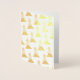 Este é um encantador padrão infantil feito de formas e cores básicas em uma floresta fofa de árvores de Natal decoradas em um fundo transparente. Na frente, ele é impresso com folha de ouro e a imagem original da cor está na frente do dentro com uma camada opaca sobre ela para amolecê-la. A saudação é um simples Feliz Natal. Escolha uma cor de fundo diferente se desejar. Todos os elementos podem ser totalmente personalizados para ajustado do seu gosto.