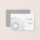 Envie sua gratidão com este cartão de agradecimento em folha metálica com uma imagem de mandala na frente. Você pode usar a opção Personalizar para alterar o texto tanto na parte externa quanto na interna (ou deixá-los em branco, se preferir). Você também pode usar a opção Personalizar para alterar a fonte ou o tamanho da fonte ou adicionar um novo bloco de texto (possivelmente uma assinatura).