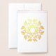 Escolha folha de ouro, prata ou bronze para esta carta elegante. O texto é perfeitamente personalizável para qualquer ocasião especial. A florescente mandala mostra a Magen David, Estrela de David, e está certa de impressionar aquela pessoa especial na sua vida. Mazel Tov!