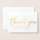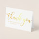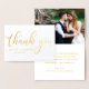 Cartão Metalizado Modern Obrigado Foto de Casamento Dourada