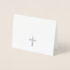 Clássico, minimalista, enlutado pelo cartões de agradecimentos de simpatia. Design mínimo com uma cruz de prata real ou (opcional) de folha de ouro na frente. Texto personalizável de dentro "Obrigado" em uma letra elegante do script de caligrafia e " Estamos profundamente gratos pelo amor e suporte que você nos mostrou durante esse período difícil"