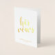 Os votos do Elegante Real Gold Foil Vows exibem o título 'Seus votos' em estilo de letra elegante de folha de ouro com detalhes de casamento no estilo de letra sans serif.