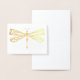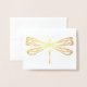 Uma elegante libélula desenhada à mão, fundida em folha cintilante, enfeita um cartão muito especial para você compor sua mensagem sentida.