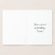 A frente deste elaborado e esbanjado design de cartão de saudação de folha de aniversário apresenta a mensagem "primeiro aniversario Feliz" no texto opulente do estilo de script. O dentro tem uma mensagem de saudação de aniversário personalizada, ou talvez pudesse ser apagado e deixado vazio se uma mensagem fosse escrita manualmente. Um cartão de saudação de aniversário formal e personalizado como este pode ser usado para celebrar o primeiro aniversário de alguém. [~Z0000555]