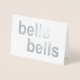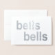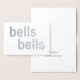 Este belo cartão fará que o aniversário do casal favorito brilhe! Na frente, as palavras "sinos sinos" são impressas em folha metálica prateada brilhante. Dentro, as palavras "feliz aniversário" -- totalmente personalizáveis com qualquer texto que você preferir -- aparecem em cor tom prateado. As palavras estão todas em letras modernas simples e simples, em um fundo branco. Perfeito para aniversários de casamento de vinte e cinco anos (ou qualquer aniversário!), ou personalize a mensagem interna com congratulações de casamento.