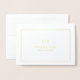 Cartões de agradecimentos clássico e elegante de casamento com seu monograma junto com seus nomes cercados por uma dupla fronteira. Todos os elementos de design na frente estão em folha de ouro real. Um Cartões de agradecimentos de Casamento dobrado ao estilo tradicional com um design limpo e eterno perfeito para um casamento formal.