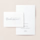 "Você Será Minha Porta-Voz?" Cartão de Foil Prateado de Script Moderno com o título "Will You Be My Bridesmaid?" no estilo de letra de script moderno de folha prateada na frente com dentro de texto personalizado de cinza da placa.