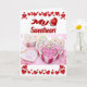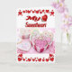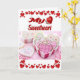 Cartão do dia dos namorados com meu amor em letras vermelhas 3D e uma caixa de doces. Personalize com sua própria foto e texto interno.