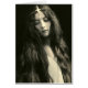 Fotografia do vintage de uma jovem mulher com cabelo muito muito longo, um olhar sério em sua cara como olha descendente e um headband pequeno do metal