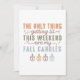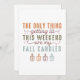 Este design de outono humorístico e aconchegante apresenta a frase espirituosa "A única coisa que vai estar acesa neste fim de semana são as minhas velas de outono" em uma mistura de fontes em negrito e elegantes. O texto é disposto de forma criativa com tamanhos e estilos de fonte variados, adicionando interesse visual e um tom lúdico. A paleta de cores inclui tons quentes de outono, como laranja queimado, verdes terrosos e marrons suaves, que evocam a calidez e o conforto da estação.