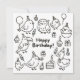 Featuring a flock of adorable hand-drawn birds, from owls and ducks to chicks and toucans, all celebrating with party hats, balloons, and cupcakes, this clean line-art design adds a fun, modern twist to your greetings.