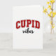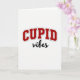 This greeting card features the words “CUPID” and “vibes” centered on a plain white background. “CUPID” sits at the top in large, deep red capital letters that curve slightly upward like a smile. Each red letter has a thin gray outline and a soft shadow that makes it look a little raised from the page. Under it, “vibes” appears in smaller black cursive writing, like quick handwriting, placed just below the red word. With no characters or scenery, the focus stays on the message and the contrast between the strong red letters and the softer black writing. It feels meaningful to give because it keeps things simple while still saying you’re thinking about love and a sweet, easy connection 🥰❤️.