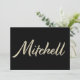 Eine personalisierte schöne und edle Karte / Grußkarte / Geschenkkarte / Geburtstagskarte im Handwriting liquid white gold Design für Mitchell.