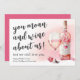 Esta carta de Dia de as mães engraçada é a maneira perfeita de mostrar à mãe que a ama, mesmo quando ela está gemendo e enrolando vinho. Apresentando uma bela garrafa de vinho cor-de-água rosa e vidro, pétalas rosa, e uma mensagem humorística que certamente trará um sorriso para a sua face, esta carta é uma forma única de mostrar seu apreço pela mãe. Este cartão também é completamente personalizável. Acrescente os nomes das crianças para que a mãe saiba como ela é amada. A mensagem diz: "Você geme vinho! Mas ainda te amamos!" e com certeza faz ela se sentir realmente especial.