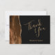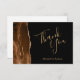 Este elegante cartões de agradecimentos de casamento moderno apresenta uma mocha castanha de aquarela agata borda com falsa brilho de ouro. O texto personalizável combina as palavras "Obrigado" em um guião de manuscrito dourado e os nomes da noiva e do noivo em itálico em um fundo preto. Adicione a sua própria mensagem pessoal ao reverso do vazio.