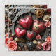 Lindo modelo de foto personalizado de Dia dos Namorados em estilo Steampunk Gótico. Lindas rosas vermelhas e douradas, flores, caveira, corações de metal e engrenagens de metal, a parte de trás tem três espaços para fotos em forma de coração. Você também pode editar o texto na área de personalização.