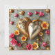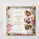 Modelo de cartão de dia dos namorados personalizado steampunk. Lindas flores cor-de-rosa e douradas, corações de metal e engrenagens de metal, A parte traseira tem três espaços para fotos em forma de coração. Você também pode editar o texto na área de personalização.