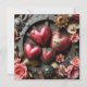 Lindo modelo de foto personalizado em estilo gótico steampunk para cartão do dia dos namorados. Lindas rosas douradas e vermelhas, flores, caveira, corações de metal e engrenagens de metal, A parte traseira tem três espaços para fotos em forma de coração. Você também pode editar o texto na área de personalização.