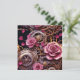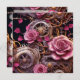 Lindo modelo de foto personalizado gótico steampunk vitoriano para cartão do Dia dos Namorados. Belas rosas cor-de-rosa, engrenagens de metal dourado, prateado e cobre. A parte de trás tem três espaços para fotos em forma de coração. Você também pode editar o texto na área de personalização.