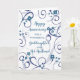 Feliz cartão de aniversário de casamento para a afilhada e seu marido com flores azuis modernas e design de espirais, e verso sincero.
