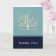 Agradeço-lhe o cartão de boas-vindas com um fundo verde mudo sobre o topo é uma árvore amarela clara com duas silhuetas de pássaros laranja sentados nos galhos. Personalizar dentro de mensagem.