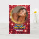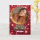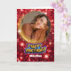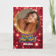 Cartão Modern Red and Gold Glitter Photo & Name Birthday