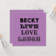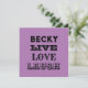 LIVE LAUGH LOVE NAME PURPLE MODERN FUN GIFT FLAT CARD Compartilha uma vibração positiva com esta moderna placa plana "Live Laugh Love" em um na moda roxo design. Personalize-o com um nome ou mensagem curta para uma inserção divertida e ponderada de presente, cartão de nota ou saudação especial de ocasião. Perfeito para aniversários, obrigado que você dá, ou apenas espalhando alegria, esta carta lisa elegante combina uma frase clássica com uma reviravolta limpa e moderna. Uma maneira pequena, mas significativa, de deixar alguém saber que você se importa.
