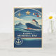 This Memorial Day design draws inspiration from classic maritime and Streamline Moderne posters of the 1930s–1940s, honoring service at sea with elegance and restraint. A powerful ocean liner cuts through rolling waves in the foreground, while a naval warship sails steadily in the distance, symbolizing duty, protection, and sacrifice. Nautical signal flags, a compass rose, and a golden star accent the sky, reinforcing themes of navigation, guidance, and honor. The message “Happy Memorial Day” is set in bold, period-style lettering, harmonizing with the clean geometry and flowing lines of the composition. Rendered in deep navy, sea blues, cream, and patriotic red accents, the artwork conveys calm strength, remembrance, and national pride.