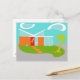 Este cartão moderno da casa dos desenhos animados do meio século tê-lo-á querer pôr para fora a esteira BEM-VINDA e fazer-se em casa! Os anos 60, características de design minimalistas da arte uma pedra lustrosa, alaranjada e uma casa de vidro do aqua em um luxúria, verde, boomerang o gramado dado forma. O gramado forma uns oásis no meio de seus arredores cinzentos, concretos. Uma palmeira verde está balançando na brisa. Quatro, alpondras alaranjadas conduzem a maneira ao retro, vermelho, porta da rua com três, placas de janela retangular, de vidro. À esquerda da porta, um flowerpot de turquesa guardara uma planta tropical, verde. A casa tem uma inclinação, o telhado branco dado forma V que está apontando para dois, branco, nuvens dadas forma do feijão-roxo. O céu é uma máscara positivamente sereno do aqua. Ninguém será quer jogar pedras deste design moderno, de vidro da casa! Compre este produto kitschy, da era espacial e seja o gato o mais fresco em seu bloco!