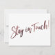 Mantenha seus amigos e familiares atualizados com seu novo endereço usando esses cartões de anúncio simples e elegantes. Você pode inseri-los em suas mensagens no tema do casamento ou compartilhá-los pessoalmente, como você vê ajustado. Quer você seja um recém-casado ou apenas queira uma design única para deixar sua tribo saber como encontrá-lo, esta carta é versátil o suficiente para qualquer um. Ele apresenta gráficos de tipografia bonito que leem "Eu Movi" na frente e "Mantenha-se em contato!" na parte de trás, usando uma fonte moderna, casual, escrita à mão. Cada um desses gráficos foi embelezado com uma camada de ouro-rosa suave, faux-metálica, para um efeito festivo. Use os campos modelo para adicionar todos os seus próprios detalhes para personalizar este design para seu próprio uso. Seus detalhes, renderizados em preto nítido, foram colocados sobre branco editável; você pode mudar o plano de fundo para qualquer cor que desejar. 105 //