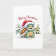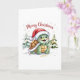 Cartão Moderno Trendy Feliz Tartaruga de Natal em Santa C