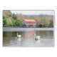 Cartão Moinho no verão com as 2 cisnes na lagoa