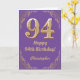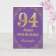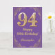 Cartão Moldura com Brilho Roxo e Dourado de 94º Aniversár