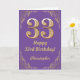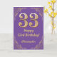Moldura com Brilho Roxo e Dourado para Aniversário de 33 Anos. Para personalização adicional, clique no botão "Personalize" e use nossa ferramenta de design para modificar este modelo.
