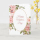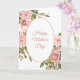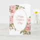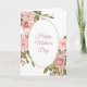 Imagens de rosa vermelha clara e folhas verdes rodeiam uma moldura oval com uma fina borda dourada na parte frontal deste cartão do Dia das Mães. Seu texto personalizado está em rosa claro combinando na parte interna da moldura oval. As imagens e o texto estão dispostos em um fundo branco. A parte interna esquerda do cartão é rosa combinando sólida, com seu texto personalizado em verde e rosa no lado direito. Fácil de personalizar, então faça-o dizer o que você quiser, ou deixe o sentimento como está.