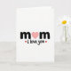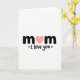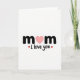 This card features the words “Mom I love you” on a plain white background, keeping all the focus on the message. “Mom” sits near the top in thick, rounded black letters, and the “o” is replaced with a soft pink heart. Just below, “i love you” appears in a casual hand-drawn letter style in black, smaller than the word above. On that lower line, two small red hearts sit near the text like little accents, adding extra warmth ❤️. The simple black, pink, and red colors feel gentle and loving without needing anything else. It feels meaningful because it says exactly what you want to say, in a way that’s easy to read and hard to miss 🥰. It’s a sweet choice for letting your mom know she’s loved, and for sharing Valentine’s Day sentiments.