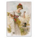 Jovem no poço tomando uma bebida. Ela segura um pedaço de grão e flores debaixo do braço. Presentes de arte para amantes de Vintage e Nostalgia.