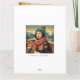 Um cartão de cumprimentos dobrado e divertido com a Mona Lisa vestida com um gorro e cachecol aconchegantes, sorrindo através de uma cena de dezembro nevada com uma simples mensagem "Feliz 2026" do lado de fora. Por dentro, o design se abre para uma saudação espirituosa de Ano Novo impressa sobre um fundo texturizado que imita uma tela antiga - dando ao cartão um toque de humor e um visual artístico de museu. Perfeito para enviar votos calorosos com um toque de paródia renascentista e alegria de inverno.