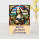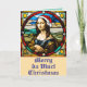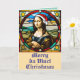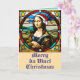 Mona Lisa vestindo um chapéu de Papai Noel é feito em vidro manchado.