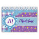 Placa de nota gráfica colorida de retalhamento, desenhada na frente e no verso, com espaço para um monograma e nome personalizados. Basta editar os campos de texto no editor fácil do Zazzle. Bom presente para colchetes, artesãos, adolescentes. Criada em parte com gráficos de Adriana Ferrari em DigitalScrapDesigns.com