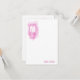 Pontos brilhantes cor-de-rosa em branco com um monograma para cartão de nota. Nomes e monogramas podem ser editados.