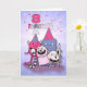 Para uma menina doce que está fazendo três anos, este cartão de aniversário rosa-lavanda e rosa com monstros felizes e fofos é um grande ganhador.