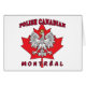 Mostre seu orgulho polonês na sua cidade natal canadense ou na sua cidade natal ancestral. Esta bela design apresenta uma folha vermelha de bordo da bandeira do Canadá com uma sobreposição de águia branca polonesa e as palavras canadense polonês no topo e Montreal no fundo.
