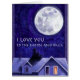 Amo-vos à design da Lua e Lua de Trás mostra a nossa arte original criada pelo nosso talentoso ilustrador infantil, Traci Van Wagoner, de um pai, criança e cão num telhado ou na sua casa a ver a lua de cheio subir no céu noturno com as palavras, Eu Amo-vos à Lua e Volta. Mande um belo lembrete para alguém que você ama hoje.
