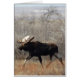 Cartão Bull Moose vertical. Um grande alce de alce magra pelo mato em uma área de colinas de areia no sul de Alberta, Canadá. O alce parece descabido neste terreno seco e arenoso que tem muito pouca água para sustentar a alça da vegetação aquática normalmente alimentada.