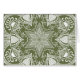 Esta mandala branca senta-se sobre um musgo escuro ou fundo verde-oliva. As cores são harmoniosas e equilibradas. Parte da coleção Howlsplann Mandala.