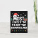 Cartão Most Likely To Start The Shenanigans Christmas Fun