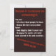Este cartão-postal de comédia negra e engraçada explica a primeira e melhor razão para se tornar um arqueólogo: você pode falar sobre pessoas de morto por horas, discutir a melhor maneira de limpar ossos, continuar cavando ferramentas no seu caminhão, desaparecer por semanas e voltar coberto de sujeira e arranhões.. e ainda assim, ninguém suspeitará que você seja um assassino em série! É uma ideia original para um amigo de humor negro e paixão pela arqueologia. O texto vermelho e branco do rico sobre um fundo castanho escuro colocou uma atmosfera de mau excelente, e o outro lado tem uma clara estrutura oval vazia para você escrever uma mensagem personalizada.